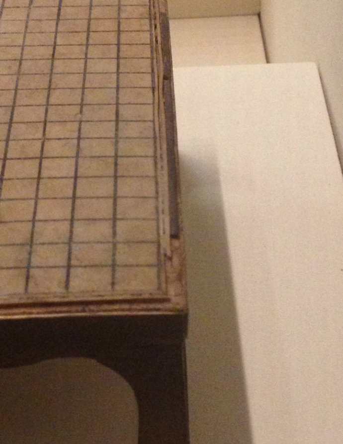 唐代棋盤雖小,工藝卻極為講究。盤面四周可見三層鑲嵌,從殘存的痕跡可見,最外側(cè)一道為象牙,中間一道較寬的鑲嵌材質(zhì)不明,最內(nèi)側(cè)一道為細木條。而盤面邊抹外側(cè),又貼一層薄木片。木片極薄,目測不超過兩毫米。而其面下壸門的結(jié)構(gòu),需要上手勘驗。